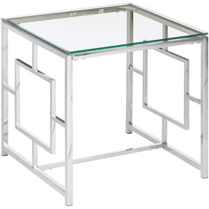 St Lucia End Table Silver Finish Stainless Steel Tempered Glass